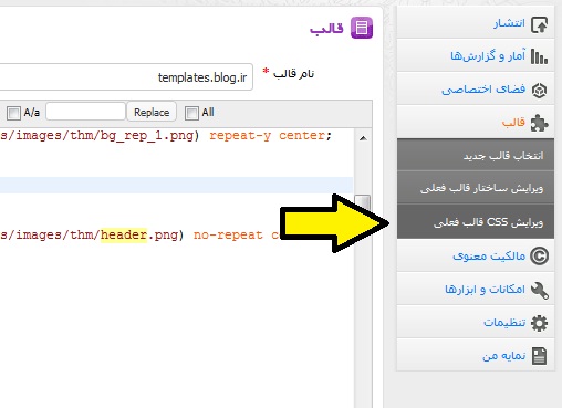 ابتدا در بخش قالب ، گزینه « ویرایش CSS قالب فعلی » را کلیک می کنیم .