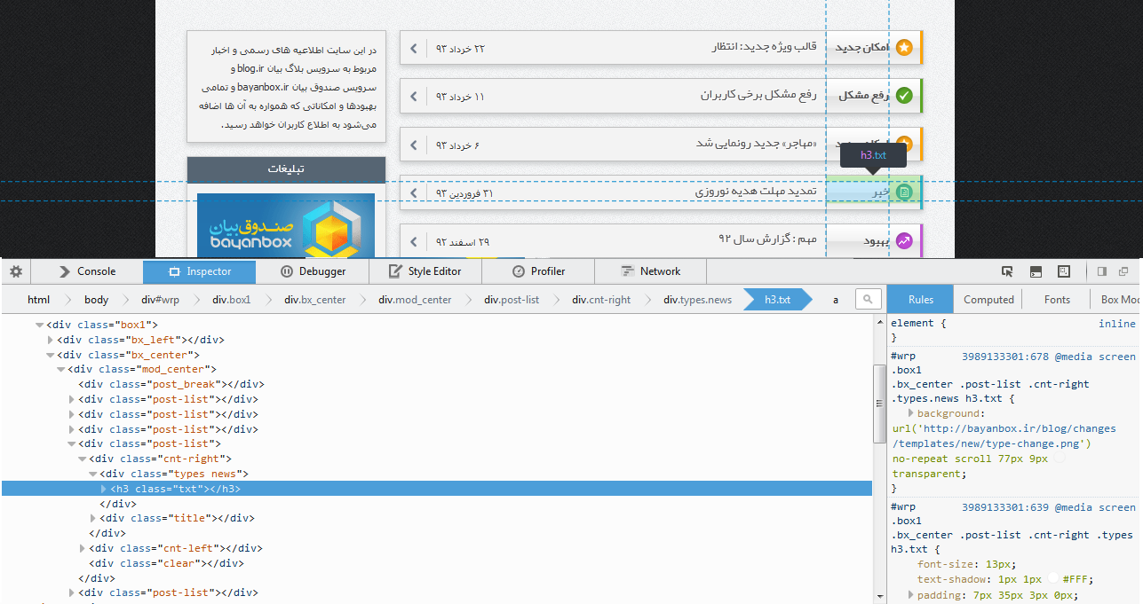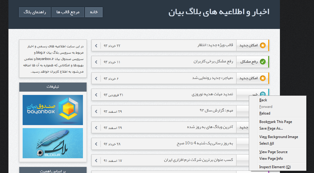 اگر می خواهید قسمتی از ظاهر وبلاگ خود را تغییر دهید ، ولی نمی دانید که دقیقا کدام قسمت از CSS یا کد قالب تان را باید تغییر دهید ؛ بر روی قسمتی که می خواهید تغییر دهید ، راست کلیک کرده و گزینه ی Inspect Element را انتخاب کنید .